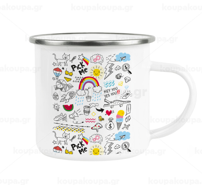 Doodle kids, Metallic enamel cup white 360ml