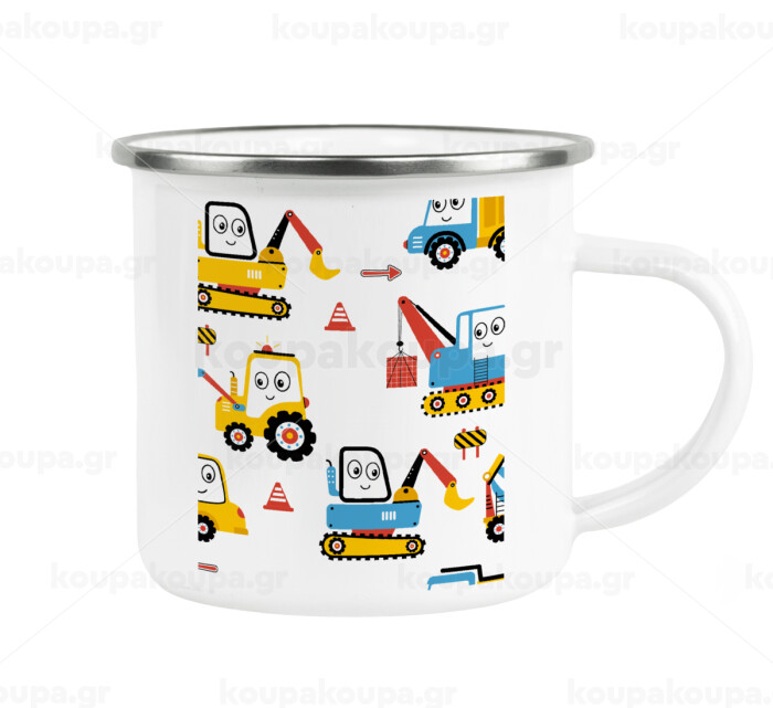 Hand drawing building truck, Metallic enamel cup white 360ml
