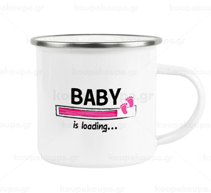 Baby is Loading GIRL, Metallic enamel cup white 360ml