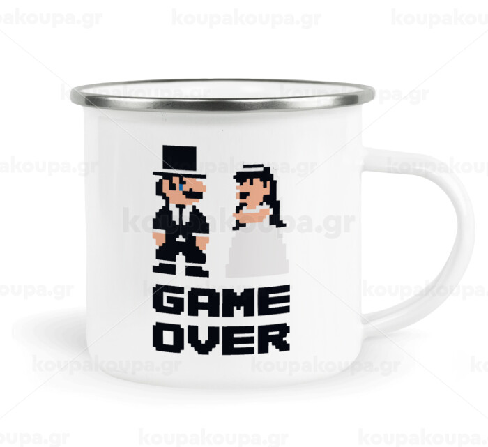 8bit Game Over Couple Wedding, Metallic enamel cup white 360ml