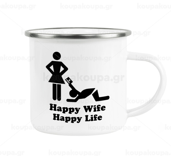 Happy Wife, Happy Life, Metallic enamel cup white 360ml