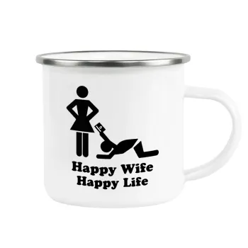 Happy Wife, Happy Life, Metallic enamel cup white 360ml