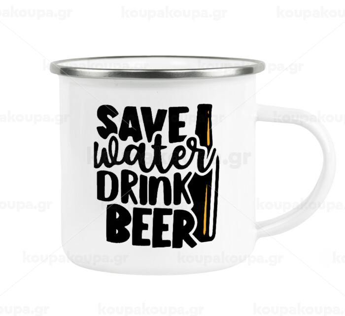 Save Water, Drink BEER, Metallic enamel cup white 360ml