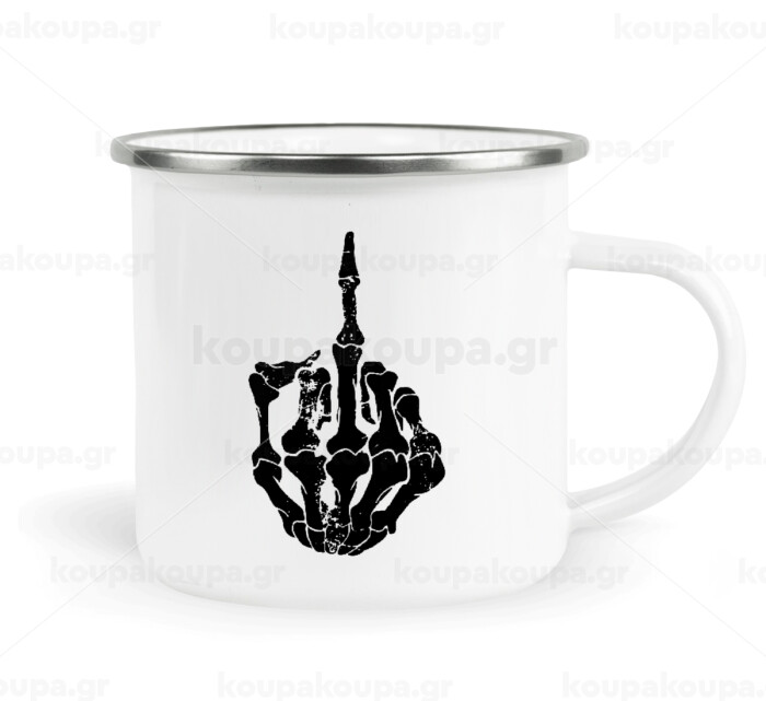 Middle finger, Metallic enamel cup white 360ml