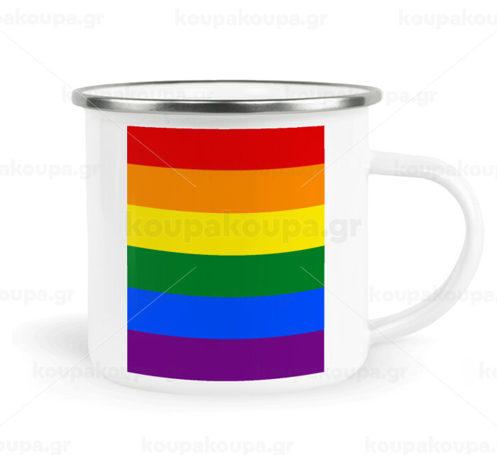Rainbow flag (LGBT) , Metallic enamel cup white 360ml