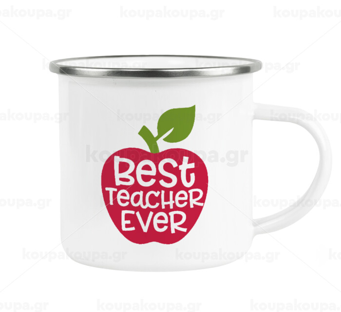 best teacher ever, apple!, Metallic enamel cup white 360ml