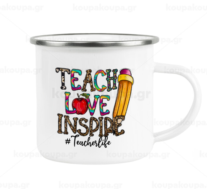 Teach, Love, Inspire, Metallic enamel cup white 360ml