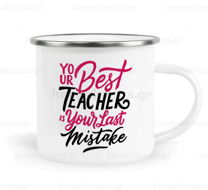 Typography quotes your best teacher is your last mistake, Metallic enamel cup white 360ml