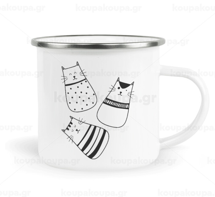 Cute cats, Metallic enamel cup white 360ml