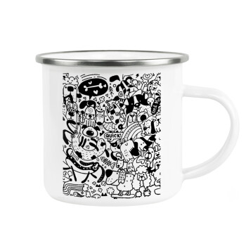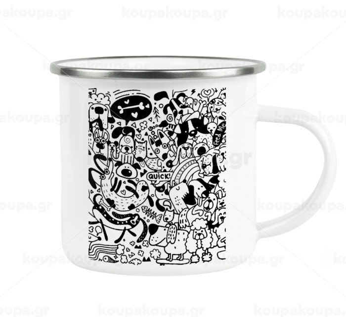 DOG pattern, Metallic enamel cup white 360ml