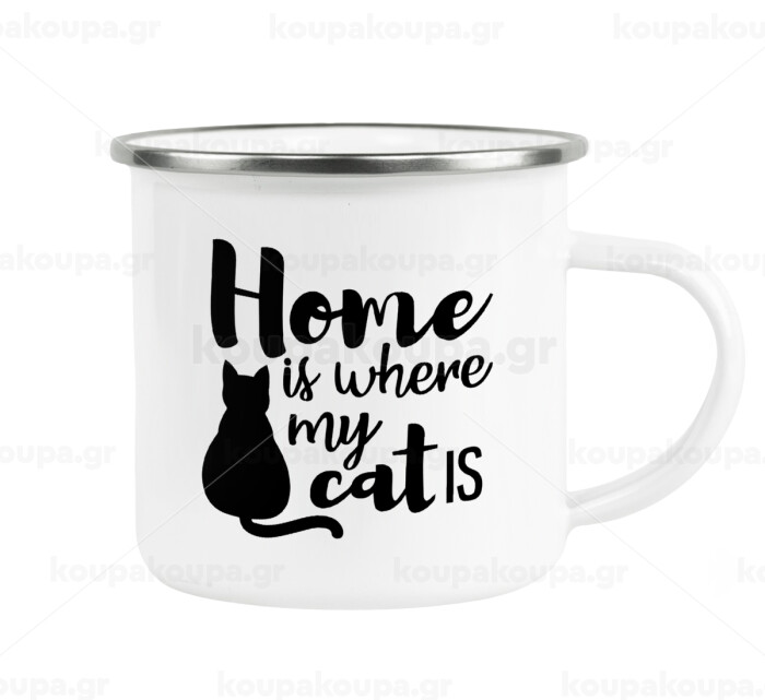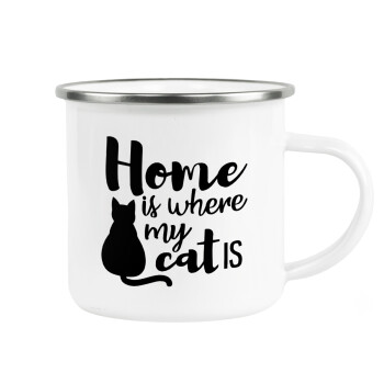 Home is where my cat is!, Metallic enamel cup white 360ml