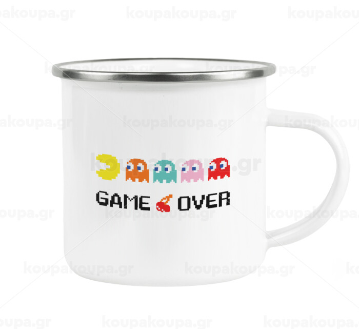 GAME OVER pac-man, Metallic enamel cup white 360ml
