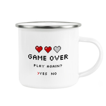 GAME OVER, Play again? YES - NO, Metallic enamel cup white 360ml