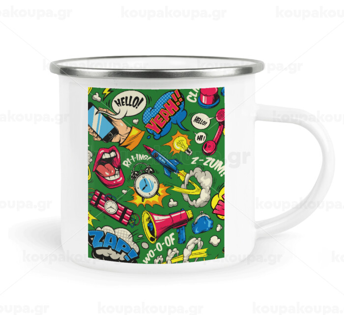 Pop art colorful seamless, Metallic enamel cup white 360ml