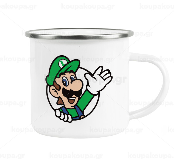Super mario Luigi win, Metallic enamel cup white 360ml
