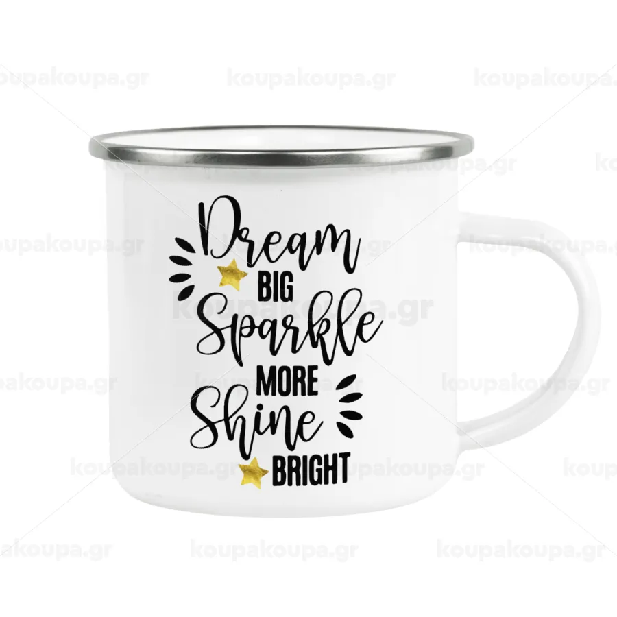 Dream big, Sparkle more, Shine bright, Metallic enamel cup white 360ml
