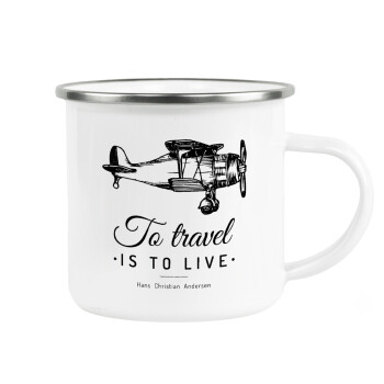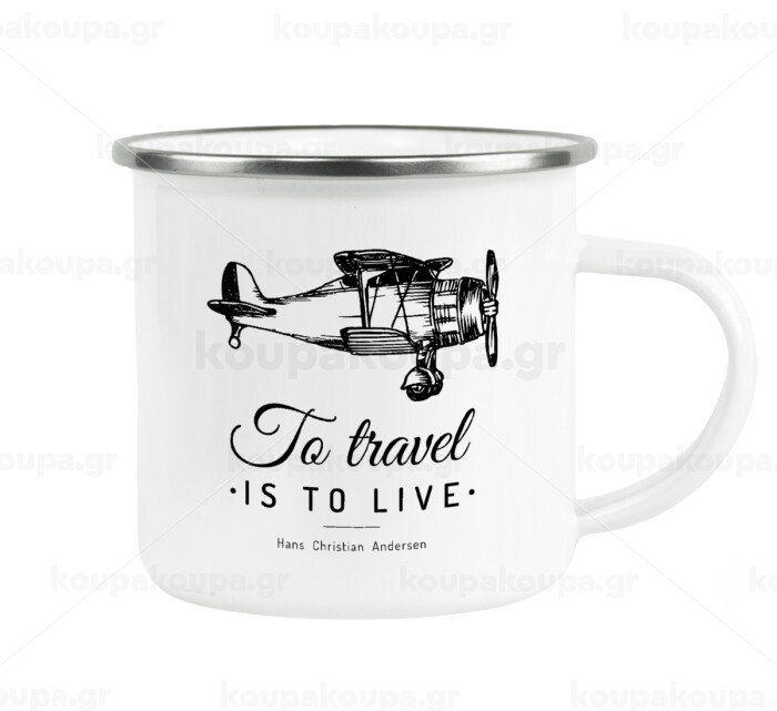 To travel is to live, Metallic enamel cup white 360ml