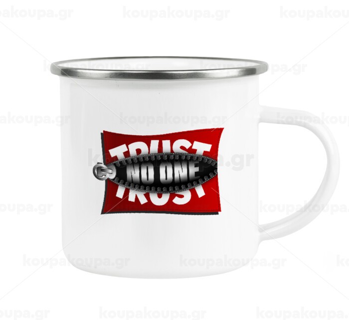 Trust no one... (zipper), Metallic enamel cup white 360ml