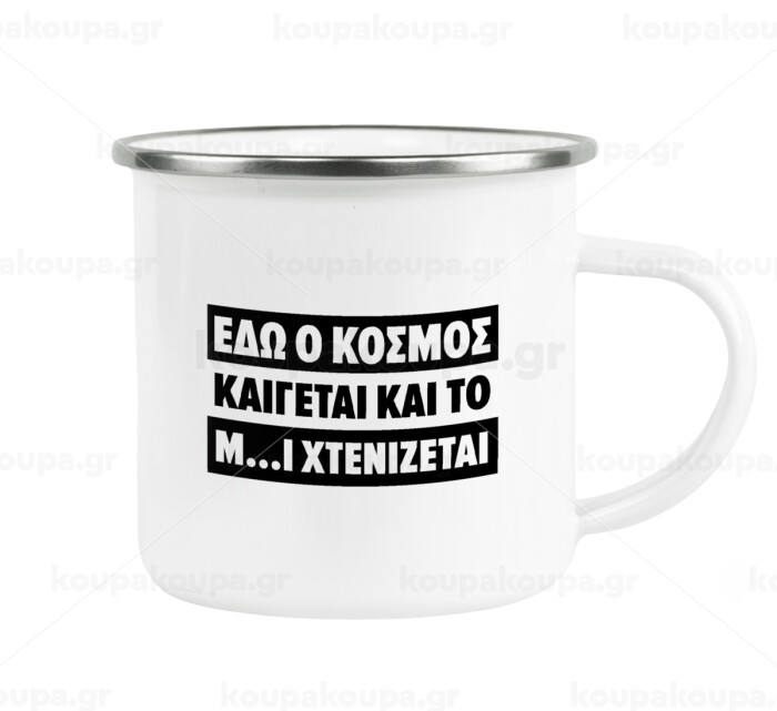 Εδώ ο κόσμος καίγεται και το Μ....Ι χτενίζεται, Metallic enamel cup white 360ml