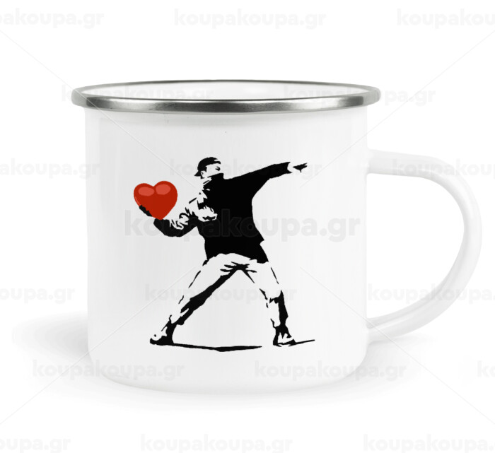 Banksy (The heart thrower), Metallic enamel cup white 360ml