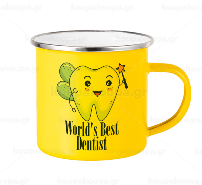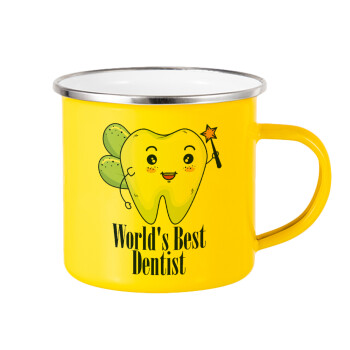 World's Best Dentist, Yellow Enamel Metallic Cup 360ml