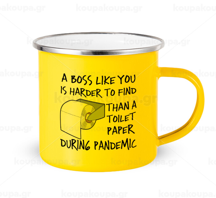 A boss like you is harder to find, than a toilet paper during pandemic, Yellow Enamel Metallic Cup 360ml
