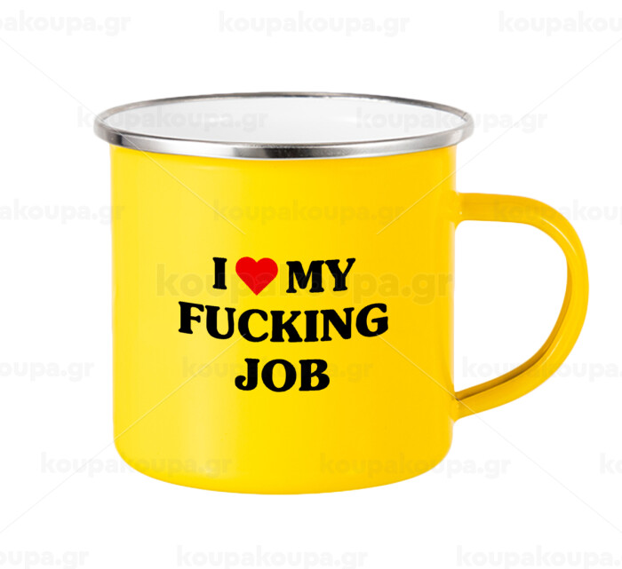 I love my fucking job, Yellow Enamel Metallic Cup 360ml