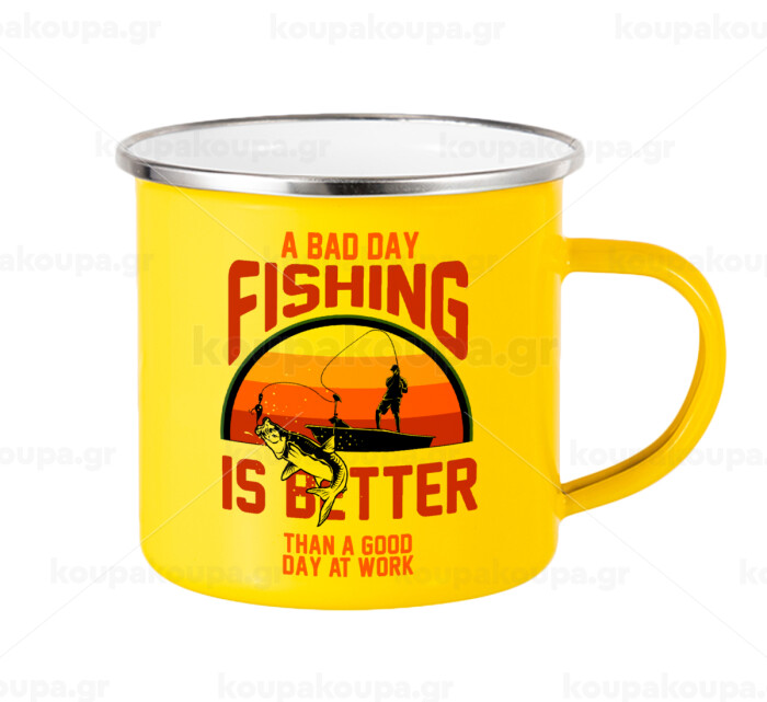 A bad day FISHING is better than a good day at work, Yellow Enamel Metallic Cup 360ml