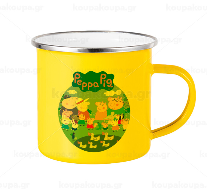Peppa pig Family, Yellow Enamel Metallic Cup 360ml