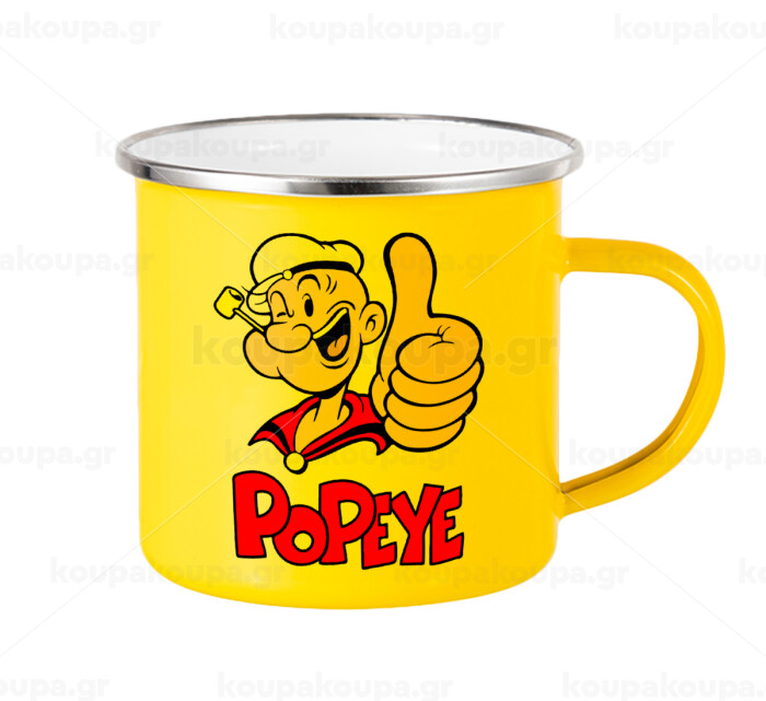 Popeye the sailor man, Yellow Enamel Metallic Cup 360ml