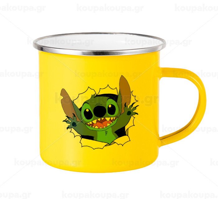 Stitch hello!!!, Yellow Enamel Metallic Cup 360ml