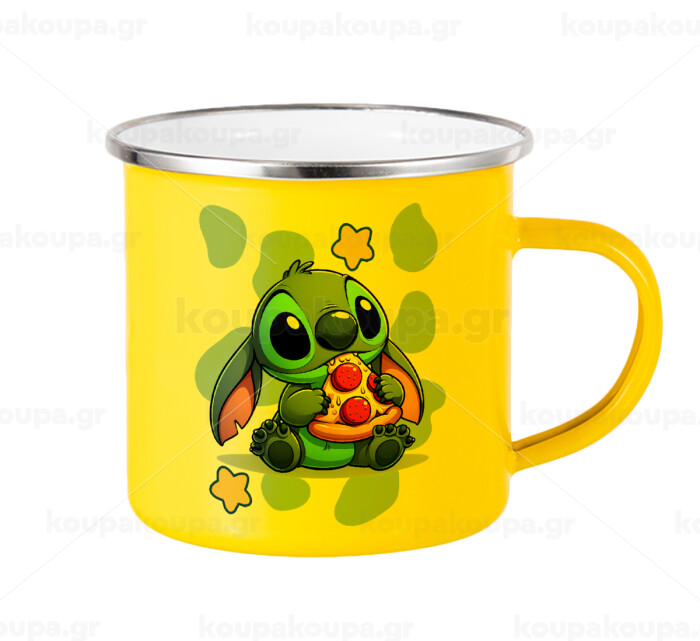 Stitch Pizza, Yellow Enamel Metallic Cup 360ml