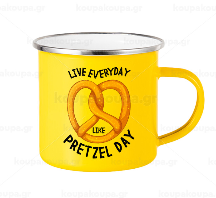 The office, Live every day like pretzel day, Yellow Enamel Metallic Cup 360ml