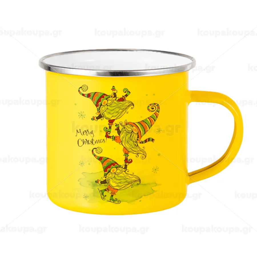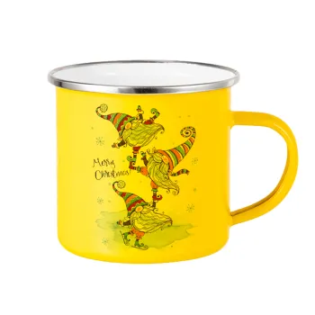 Christmas nordic gnomes, Yellow Enamel Metallic Cup 360ml