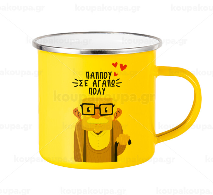 Παππού σε αγαπώ πολύ!, Yellow Enamel Metallic Cup 360ml