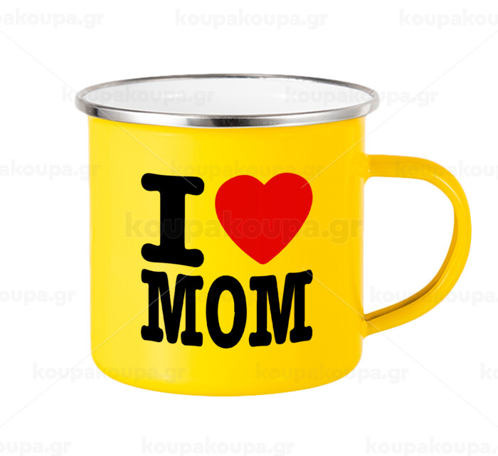 I LOVE MOM, Yellow Enamel Metallic Cup 360ml
