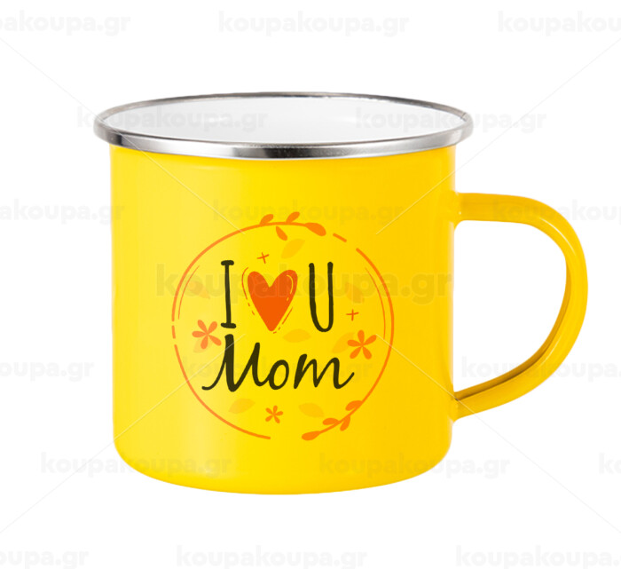I Love you Mom pink, Yellow Enamel Metallic Cup 360ml