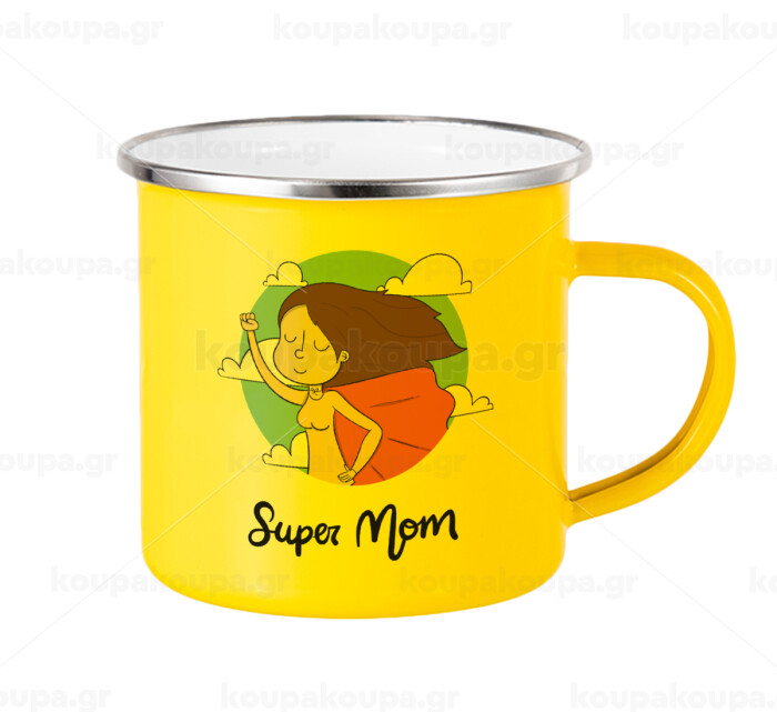Super mom, Yellow Enamel Metallic Cup 360ml