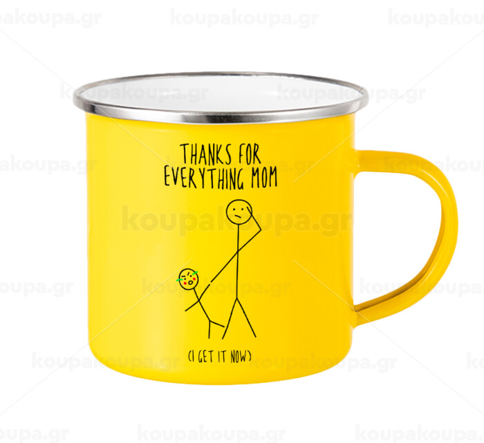 Thanks for everything mom, Yellow Enamel Metallic Cup 360ml
