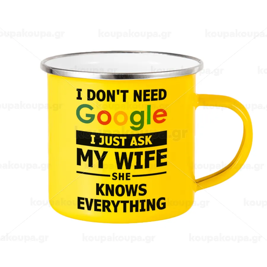 I don't need Google, just ask my WIFE, Yellow Enamel Metallic Cup 360ml