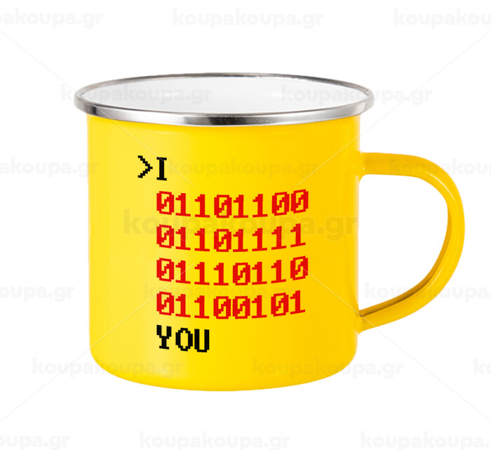 I .... YOU, binary secret MSG, Yellow Enamel Metallic Cup 360ml