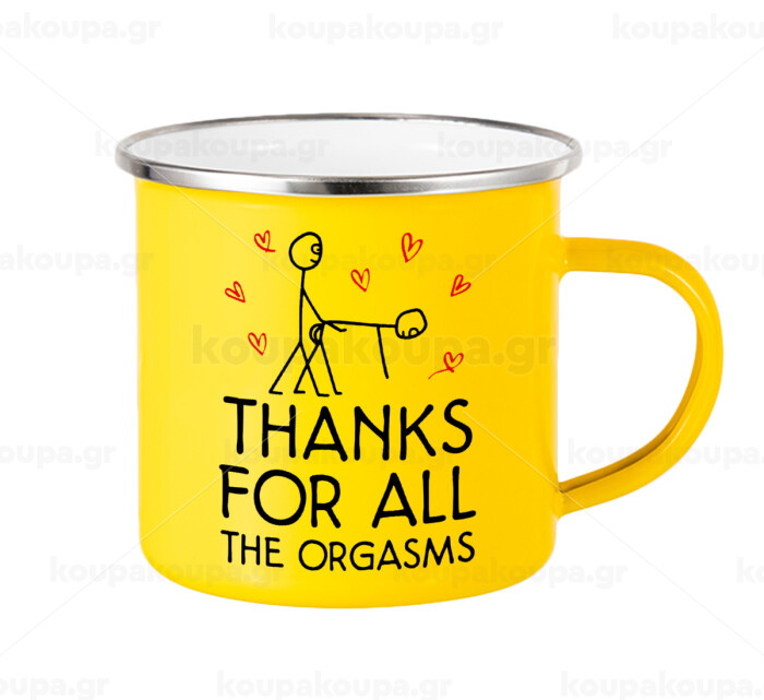 Thanks for all the orgasms, Yellow Enamel Metallic Cup 360ml