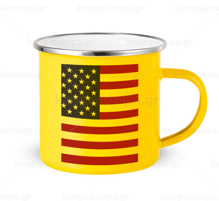 USA Flag, Yellow Enamel Metallic Cup 360ml