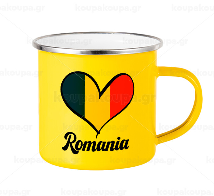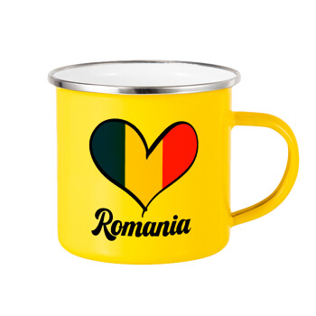Romania flag, Yellow Enamel Metallic Cup 360ml