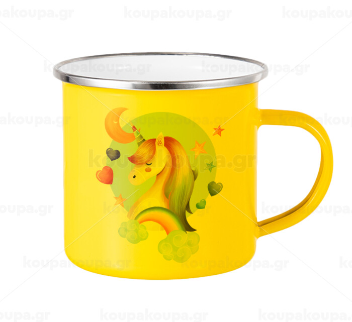 Cute unicorn, Yellow Enamel Metallic Cup 360ml