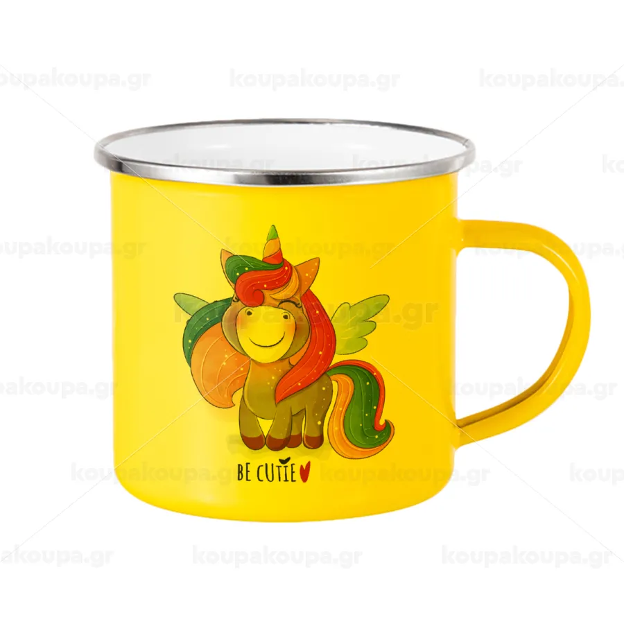 Pink unicorn, Yellow Enamel Metallic Cup 360ml