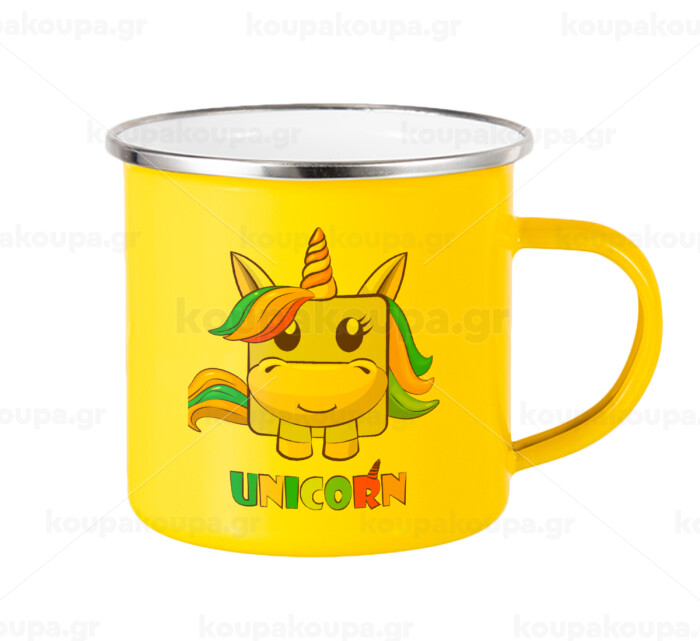 Unicorns cube, Yellow Enamel Metallic Cup 360ml