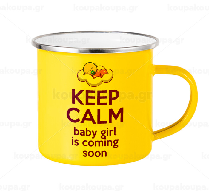 KEEP CALM baby girl is coming soon!!!, Yellow Enamel Metallic Cup 360ml