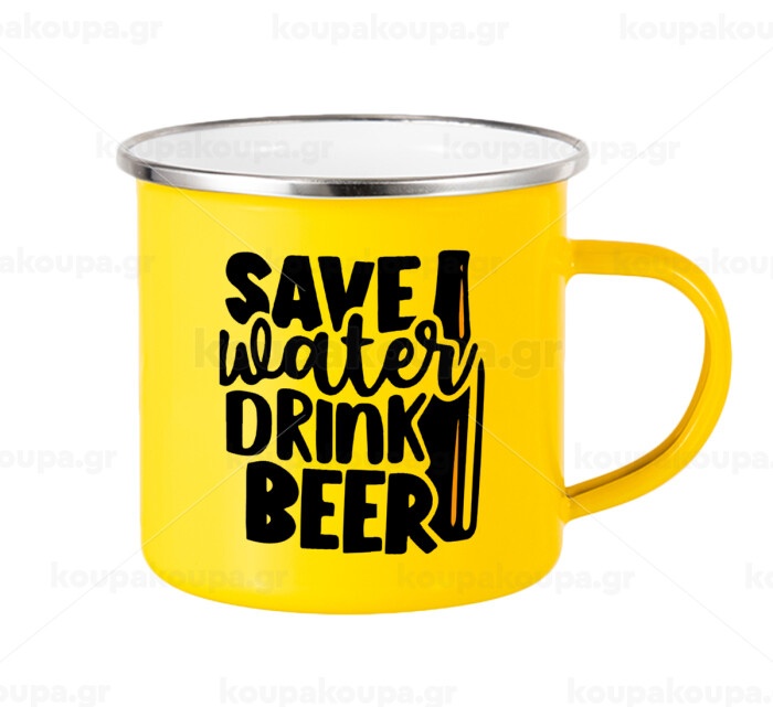 Save Water, Drink BEER, Yellow Enamel Metallic Cup 360ml