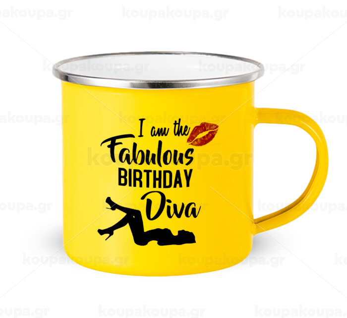 I am the fabulous Birthday Diva, Yellow Enamel Metallic Cup 360ml
